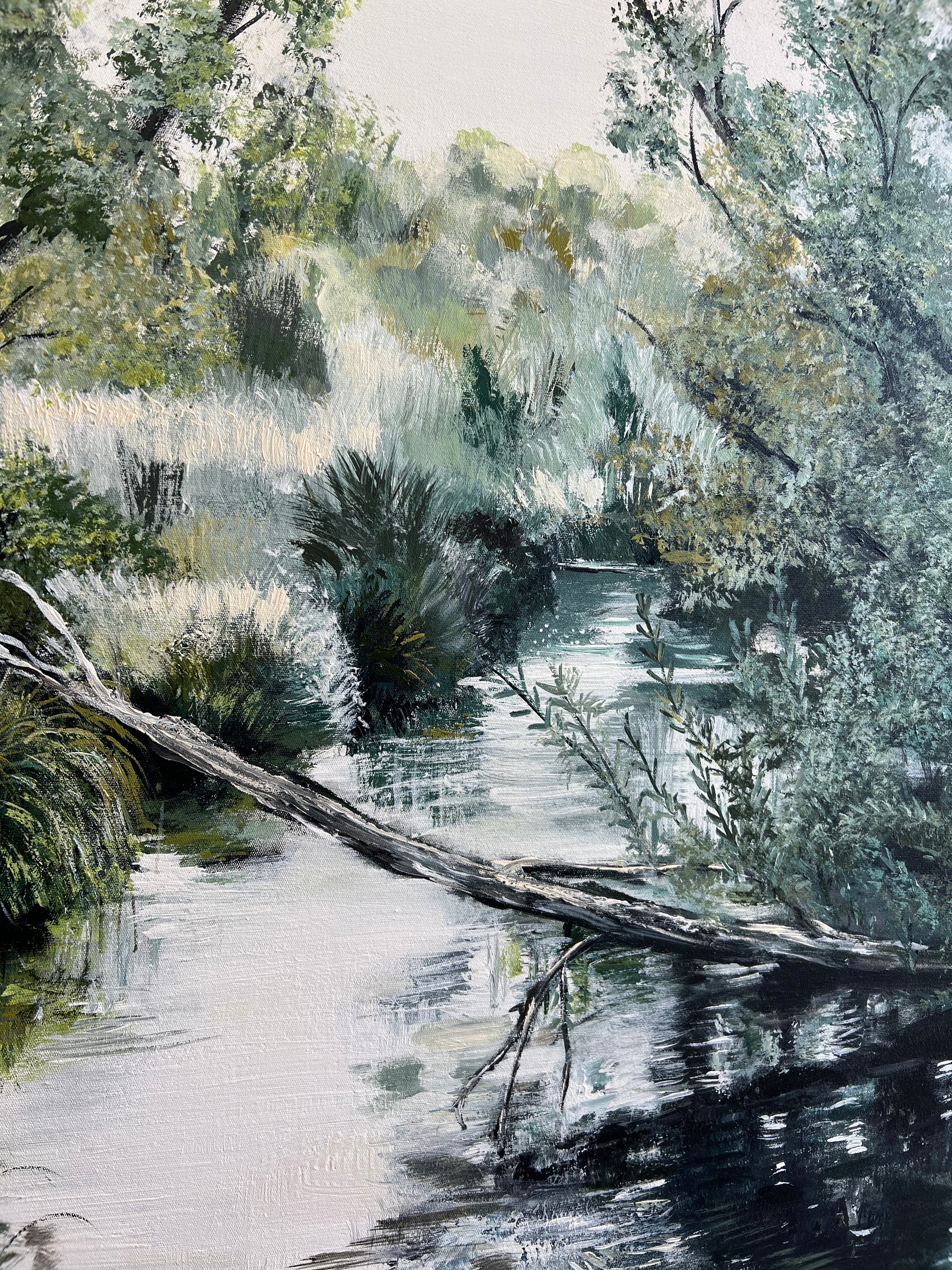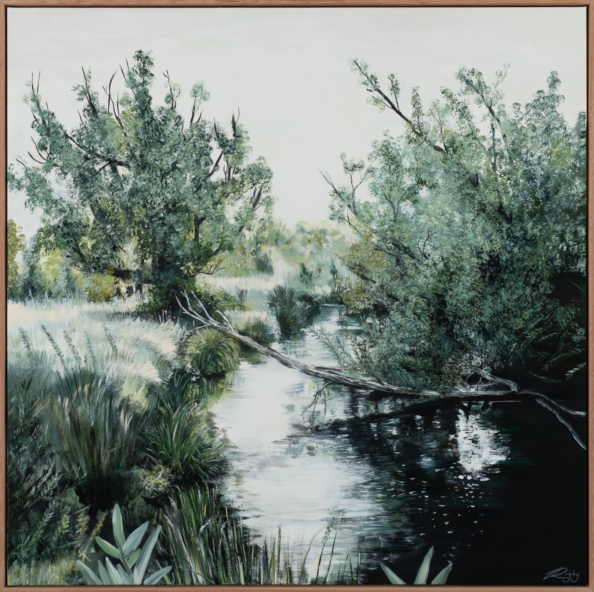 This reproduction print is derived from an original Jessie Rigby painting. The original featured a combination of various mediums including acrylics, oil pastels and metallics on canvas.