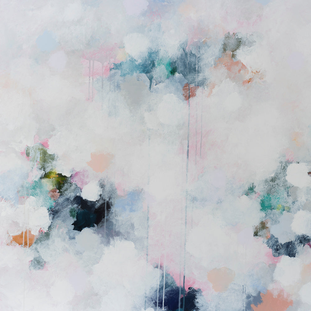 This reproduction print is derived from an original Jessie Rigby painting. The original featured a combination of various mediums including acrylics, oil pastels and metallics on canvas.
