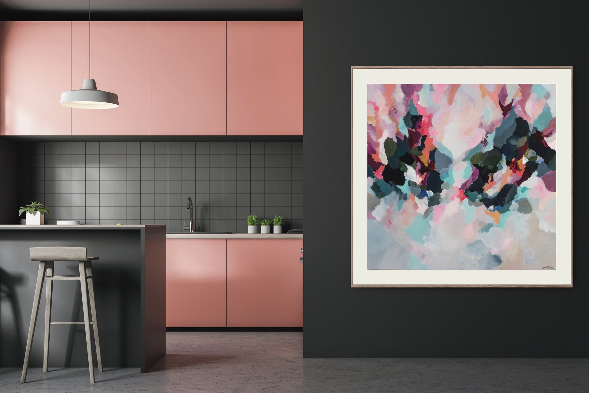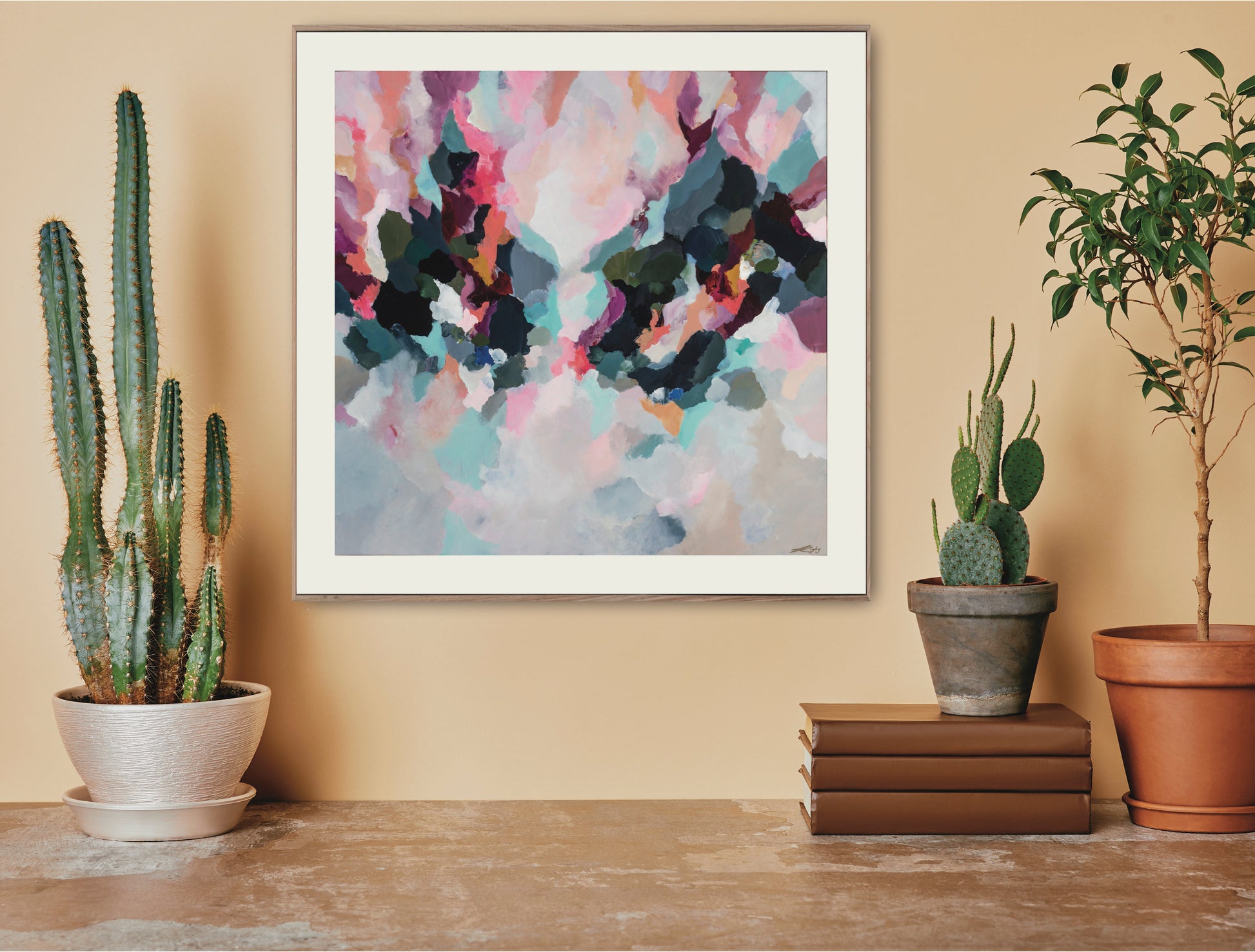 This reproduction print is derived from an original Jessie Rigby painting. The original featured a combination of various mediums including acrylics, oil pastels and metallics on canvas.