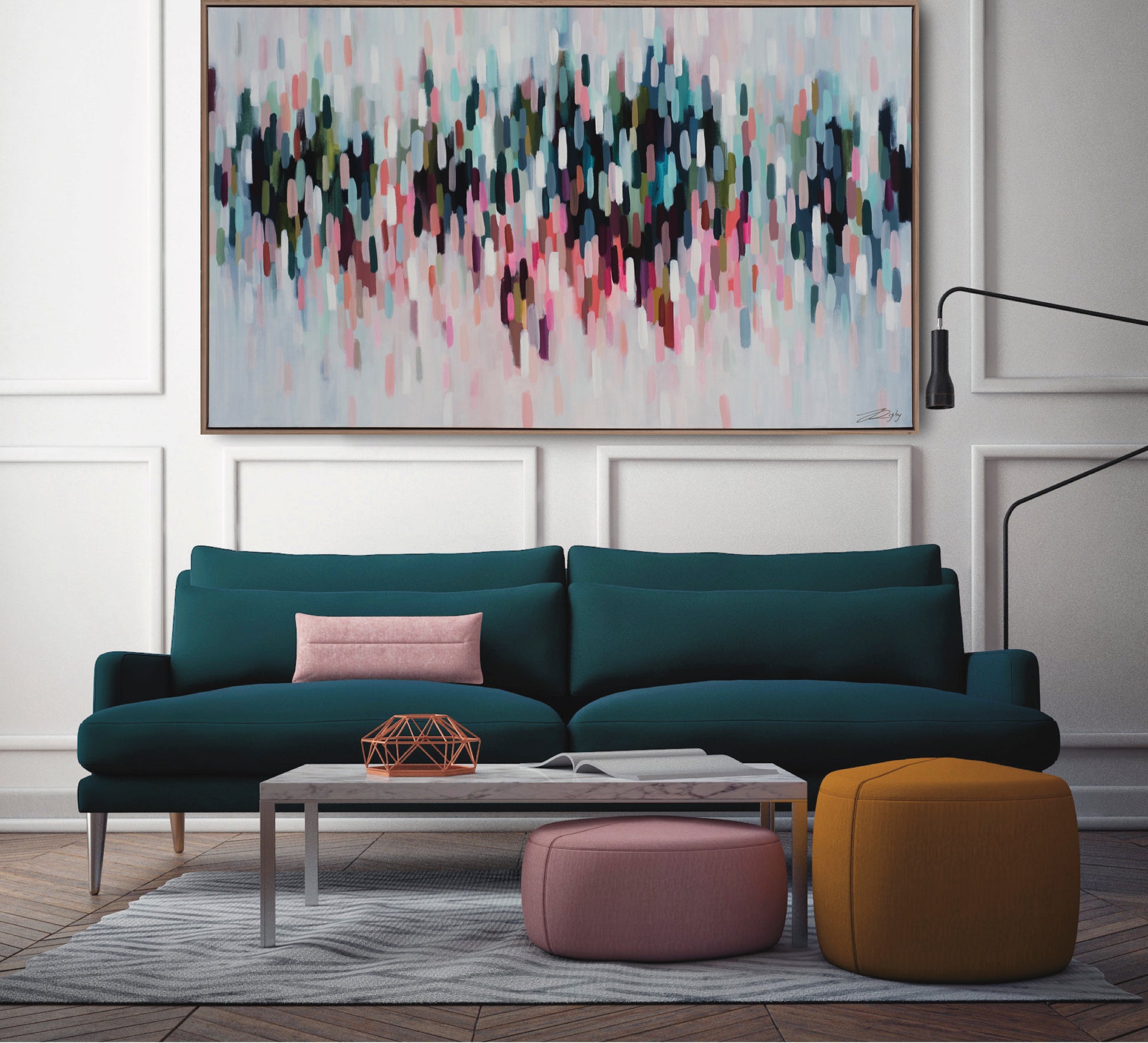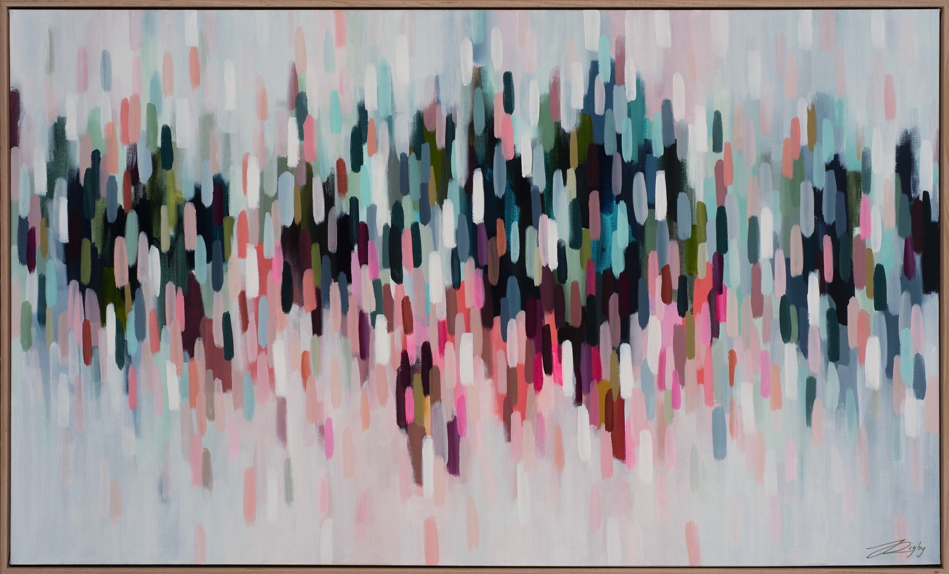 This reproduction print is derived from an original Jessie Rigby painting. The original featured a combination of various mediums including acrylics, oil pastels and metallics on canvas.