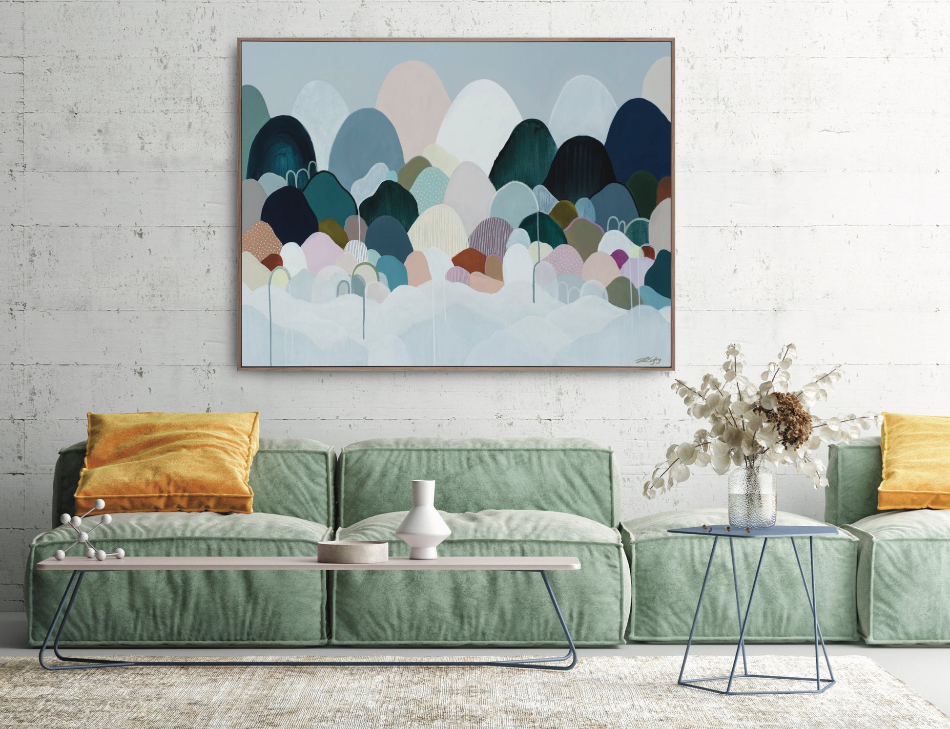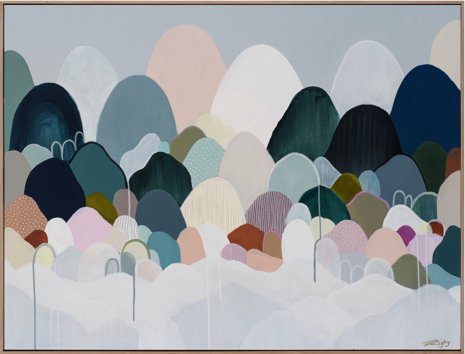 This reproduction print is derived from an original Jessie Rigby painting. The original featured a combination of various mediums including acrylics, oil pastels and metallics on canvas.