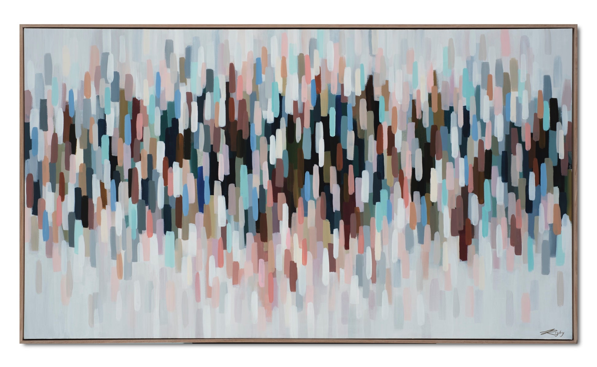 This reproduction print is derived from an original Jessie Rigby painting. The original featured a combination of various mediums including acrylics, oil pastels and metallics on canvas.