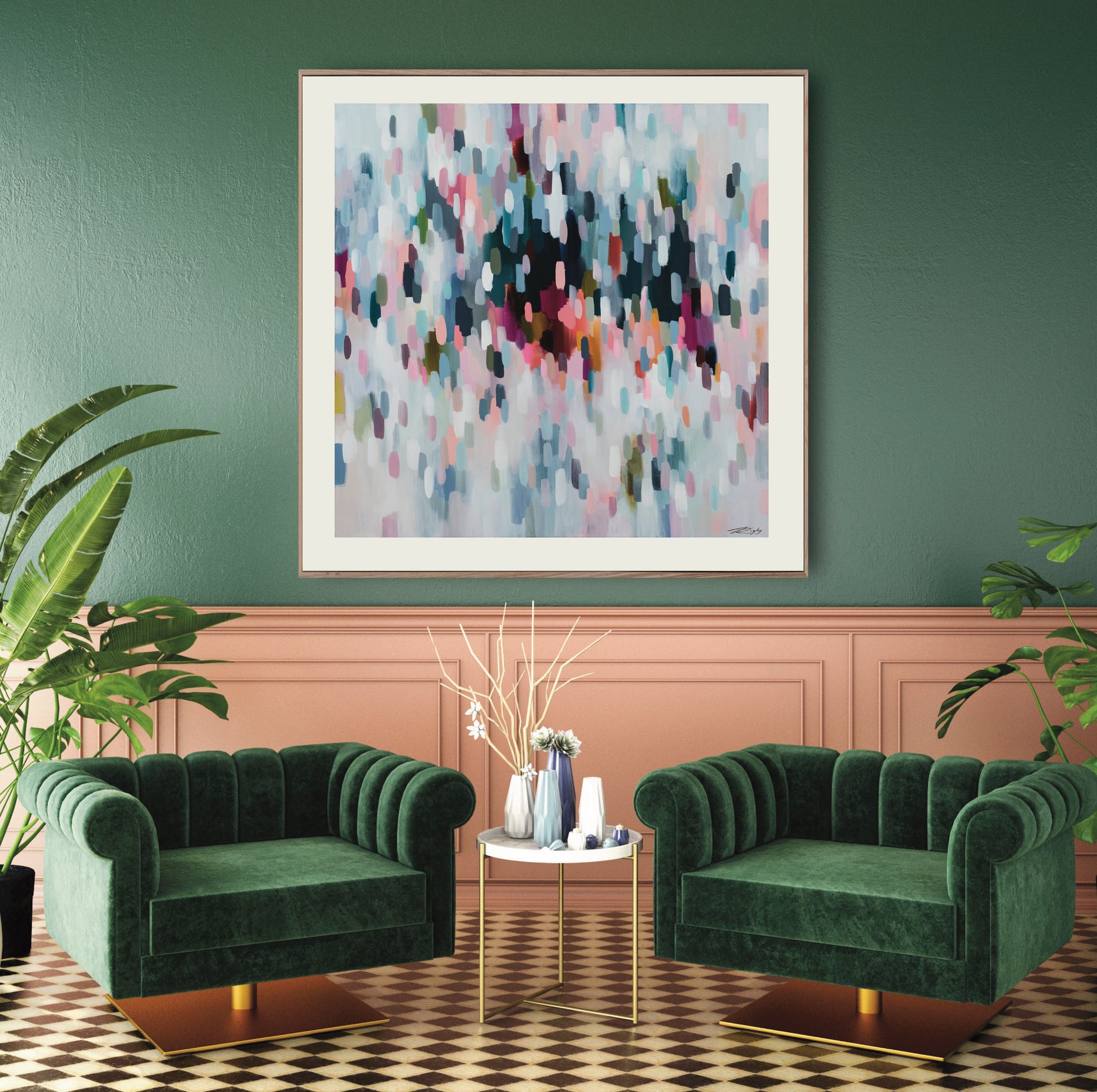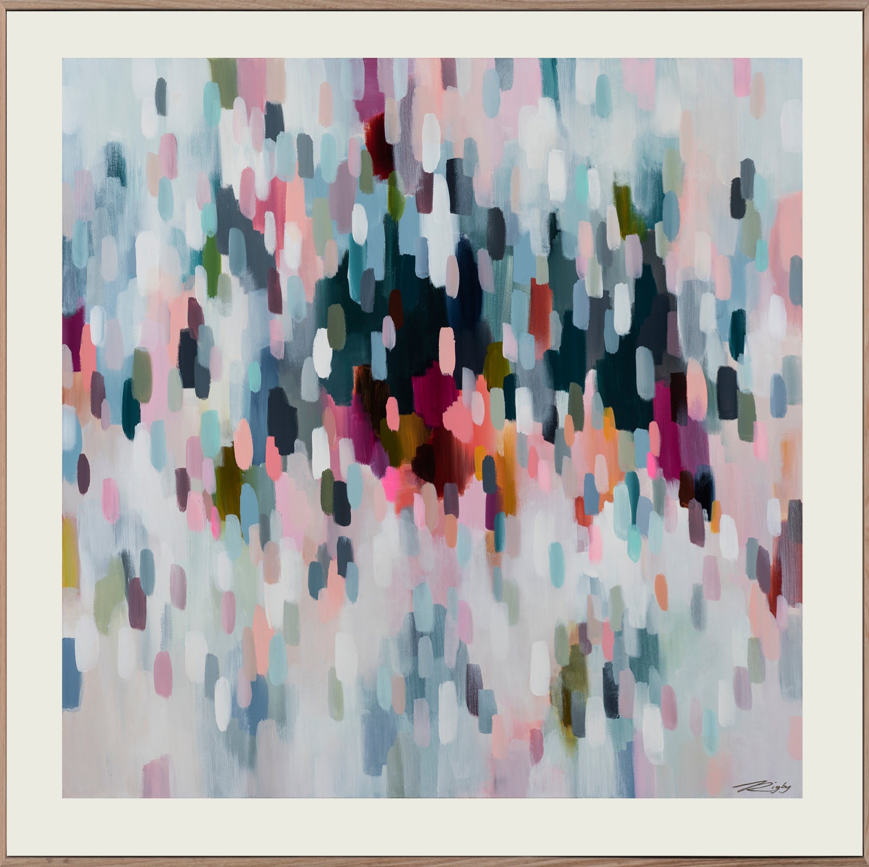 This reproduction print is derived from an original Jessie Rigby painting. The original featured a combination of various mediums including acrylics, oil pastels and metallics on canvas.