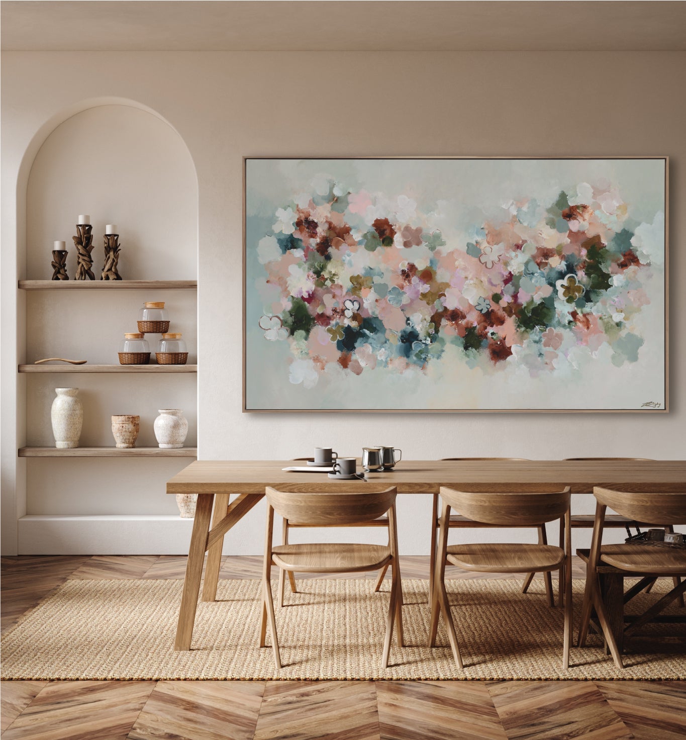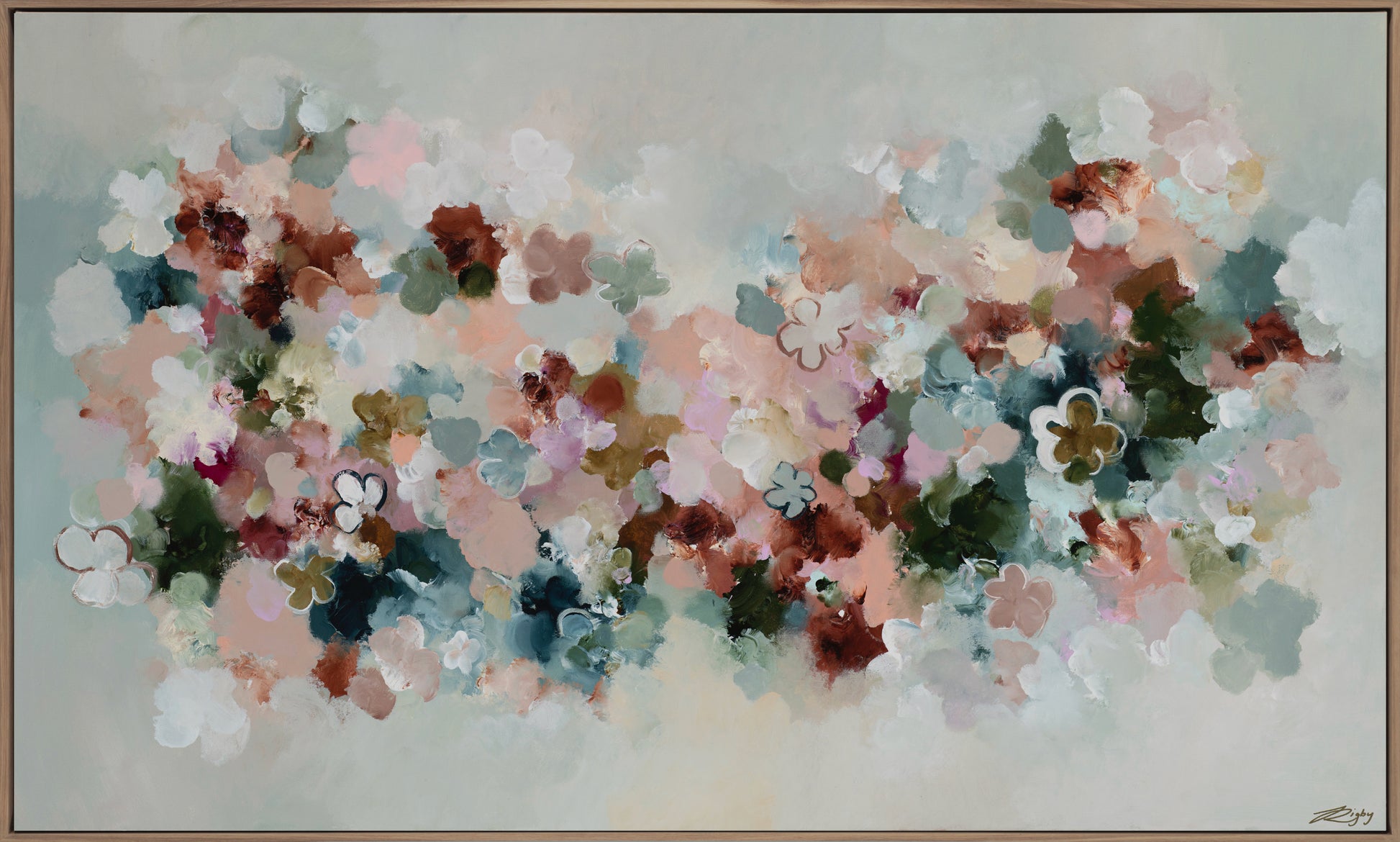 This reproduction print is derived from an original Jessie Rigby painting. The original featured a combination of various mediums including acrylics, oil pastels and metallics on canvas.