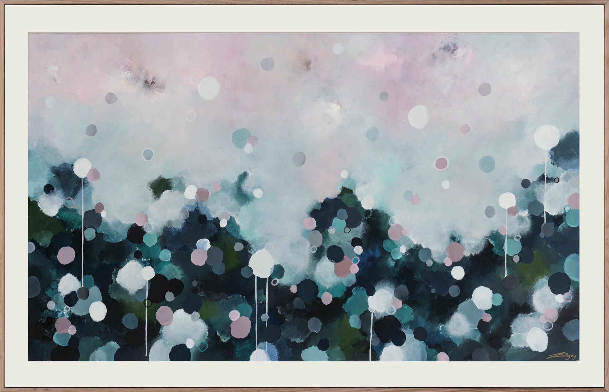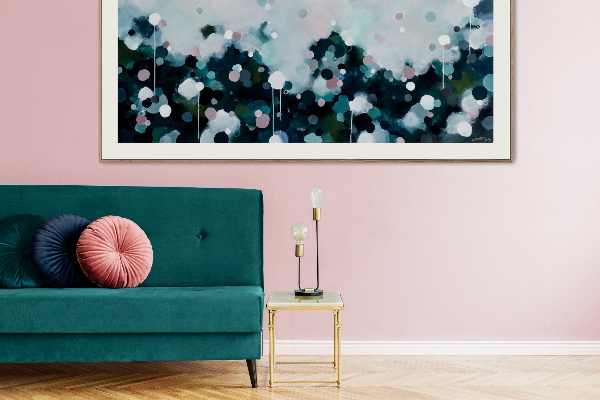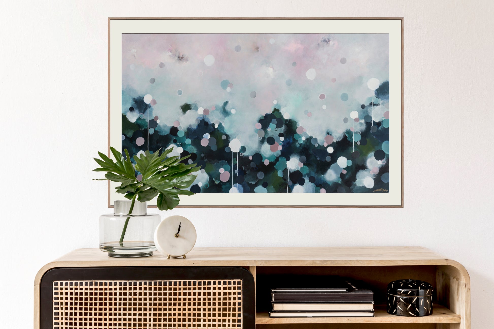This reproduction print is derived from an original Jessie Rigby painting. The original featured a combination of various mediums including acrylics, oil pastels and metallics on canvas.