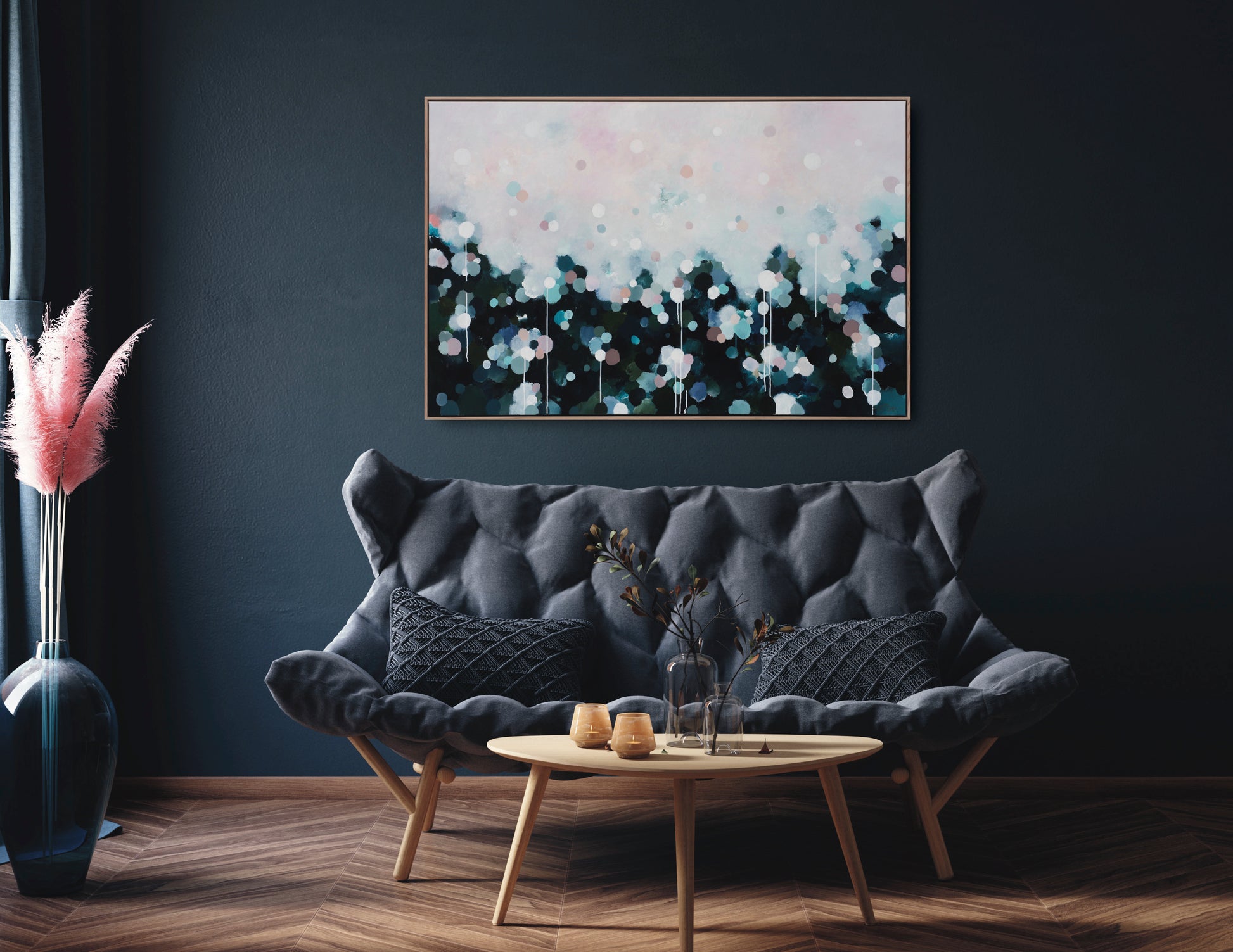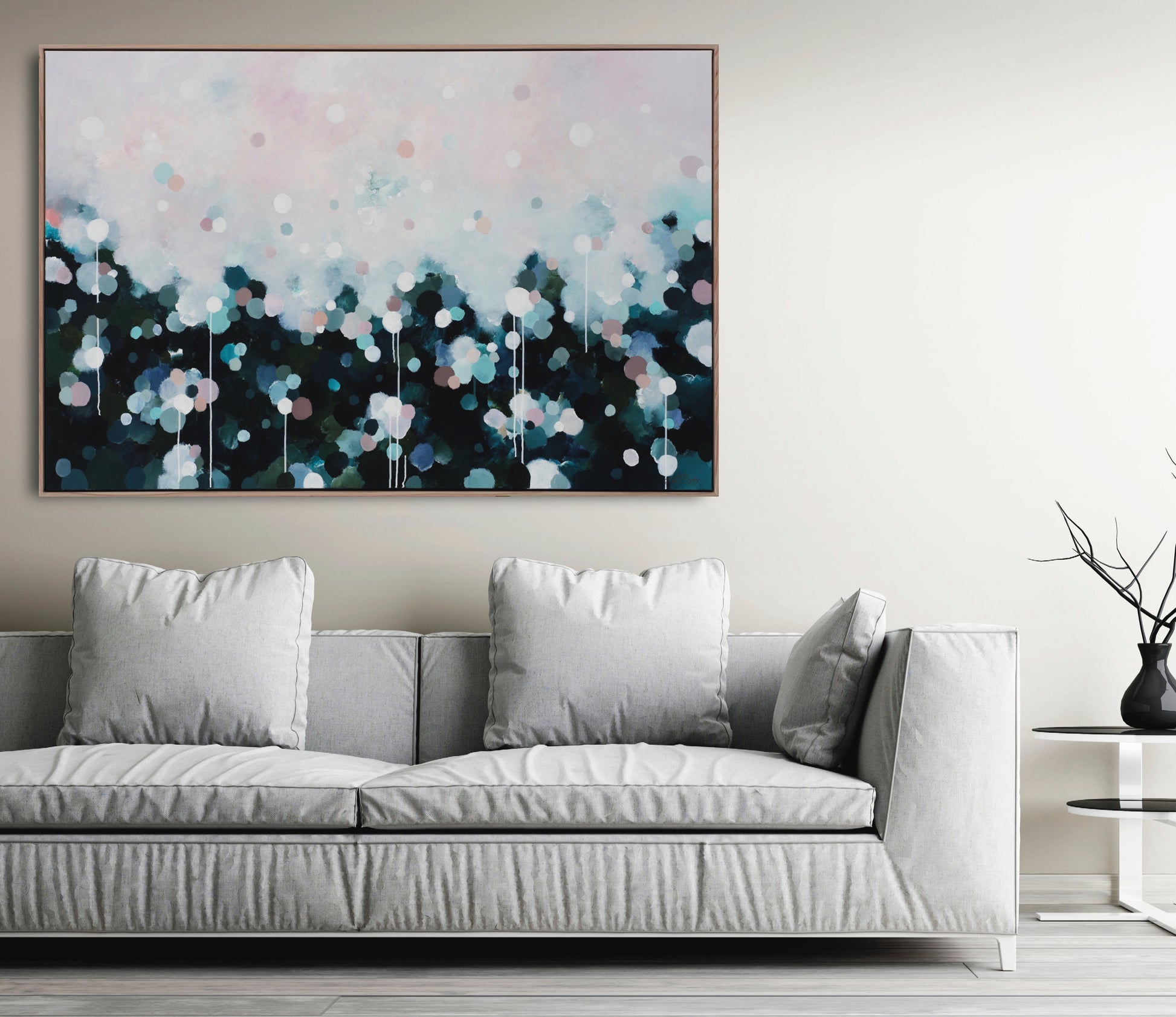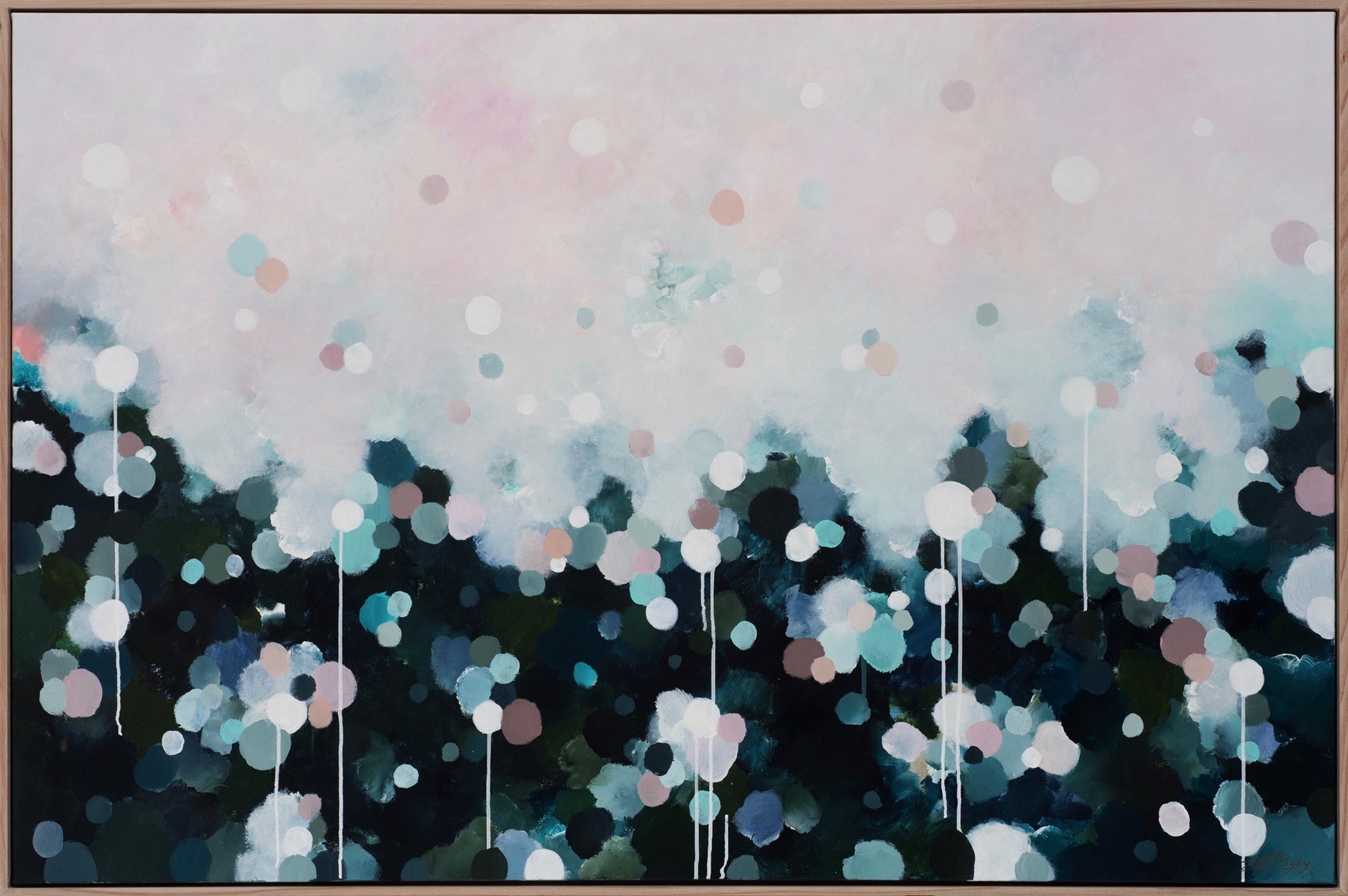 This reproduction print is derived from an original Jessie Rigby painting. The original featured a combination of various mediums including acrylics, oil pastels and metallics on canvas.