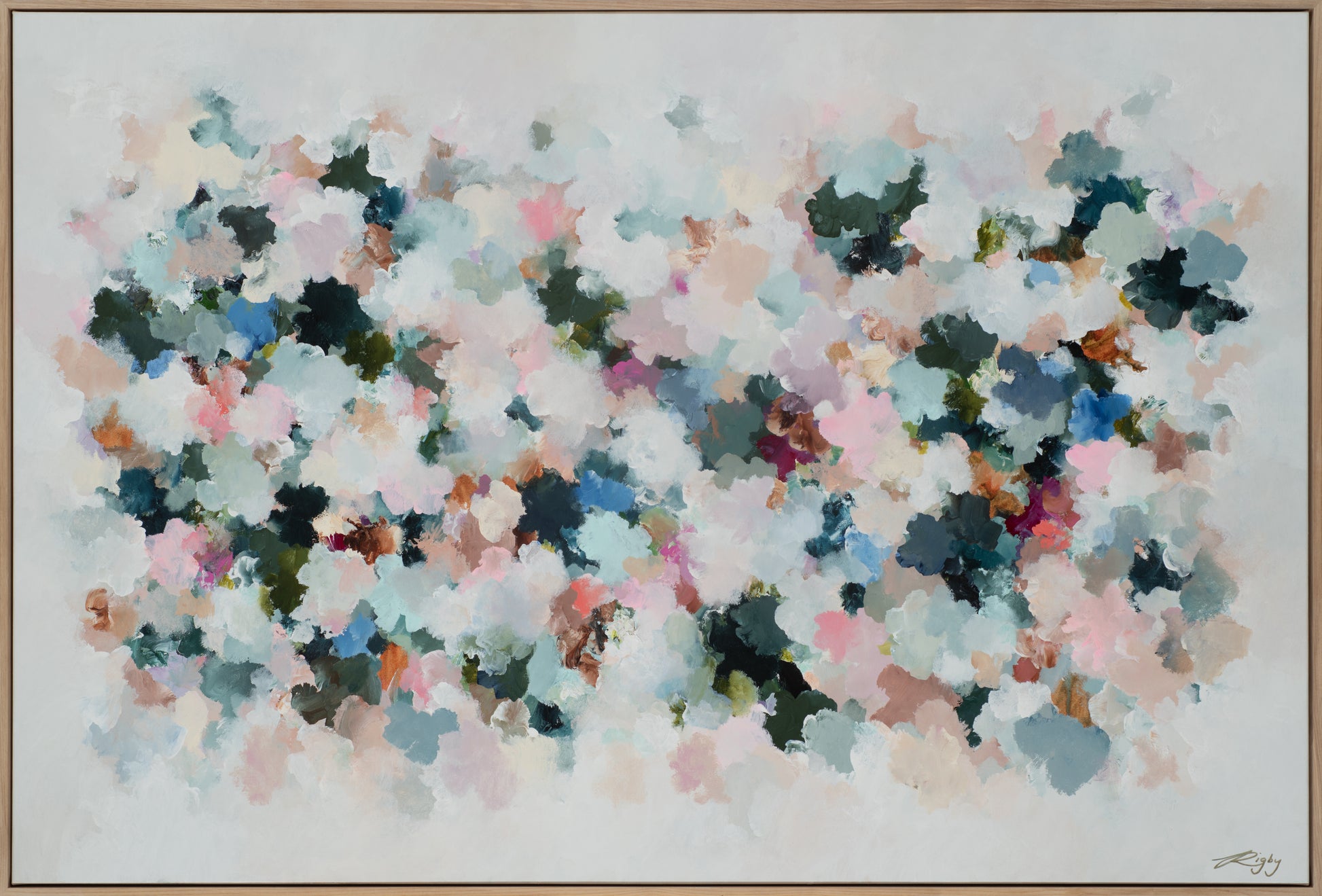 This reproduction print is derived from an original Jessie Rigby painting. The original featured a combination of various mediums including acrylics, oil pastels and metallics on canvas.