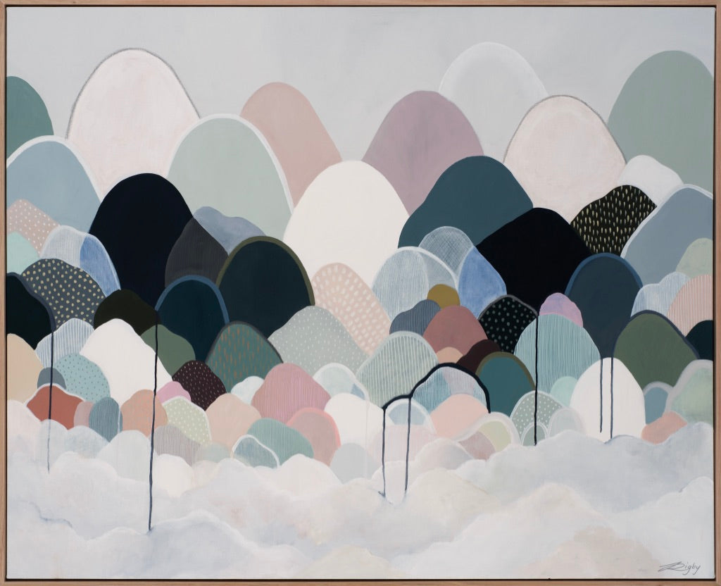 This reproduction print is derived from an original Jessie Rigby painting. The original featured a combination of various mediums including acrylics, oil pastels and metallics on canvas.
