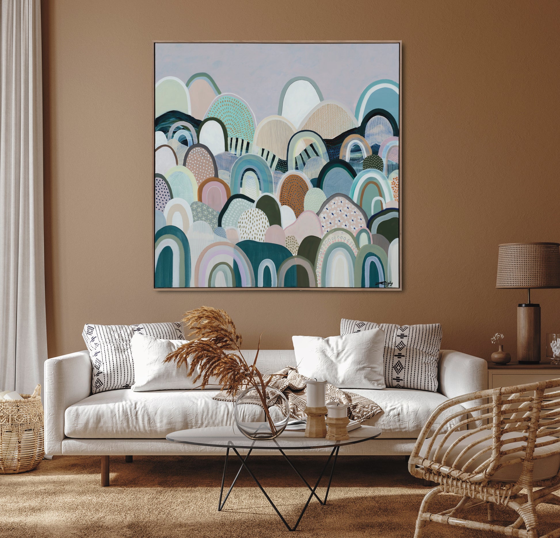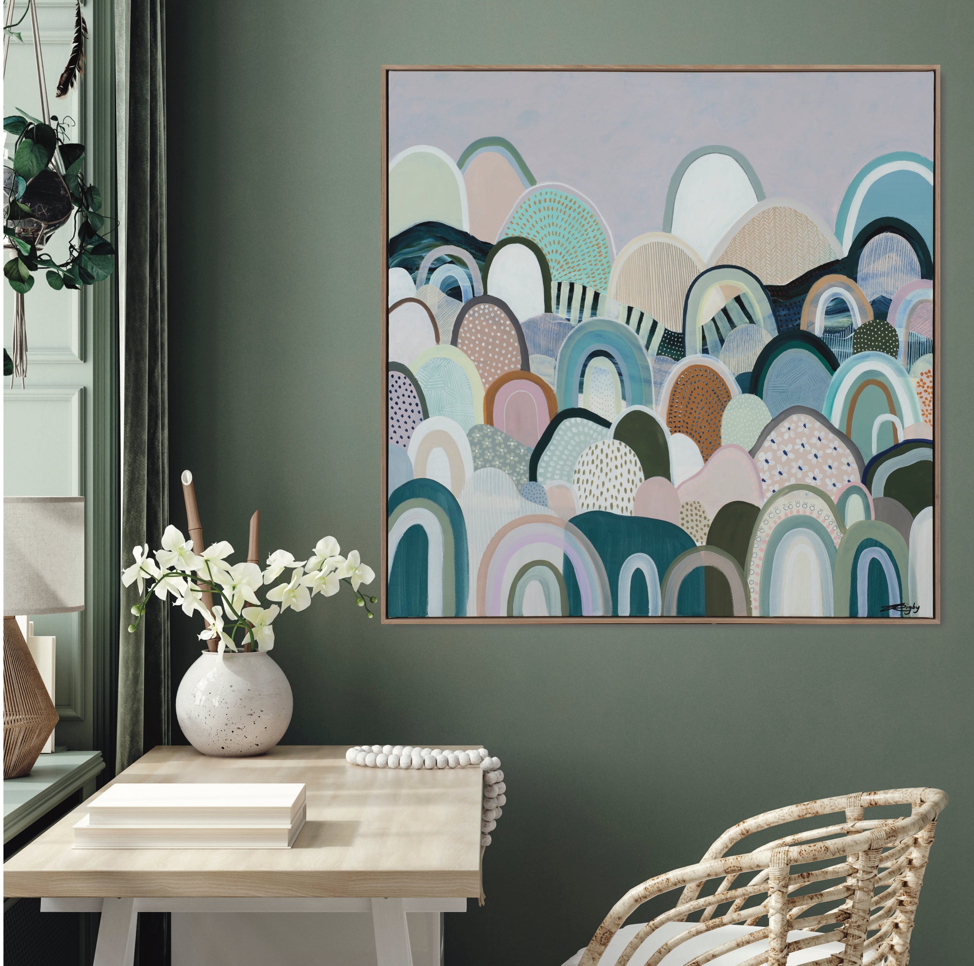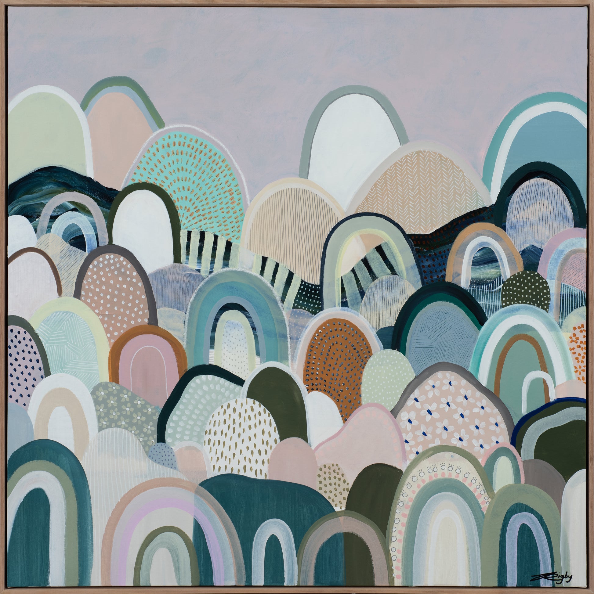 This reproduction print is derived from an original Jessie Rigby painting. The original featured a combination of various mediums including acrylics, oil pastels and metallics on canvas.