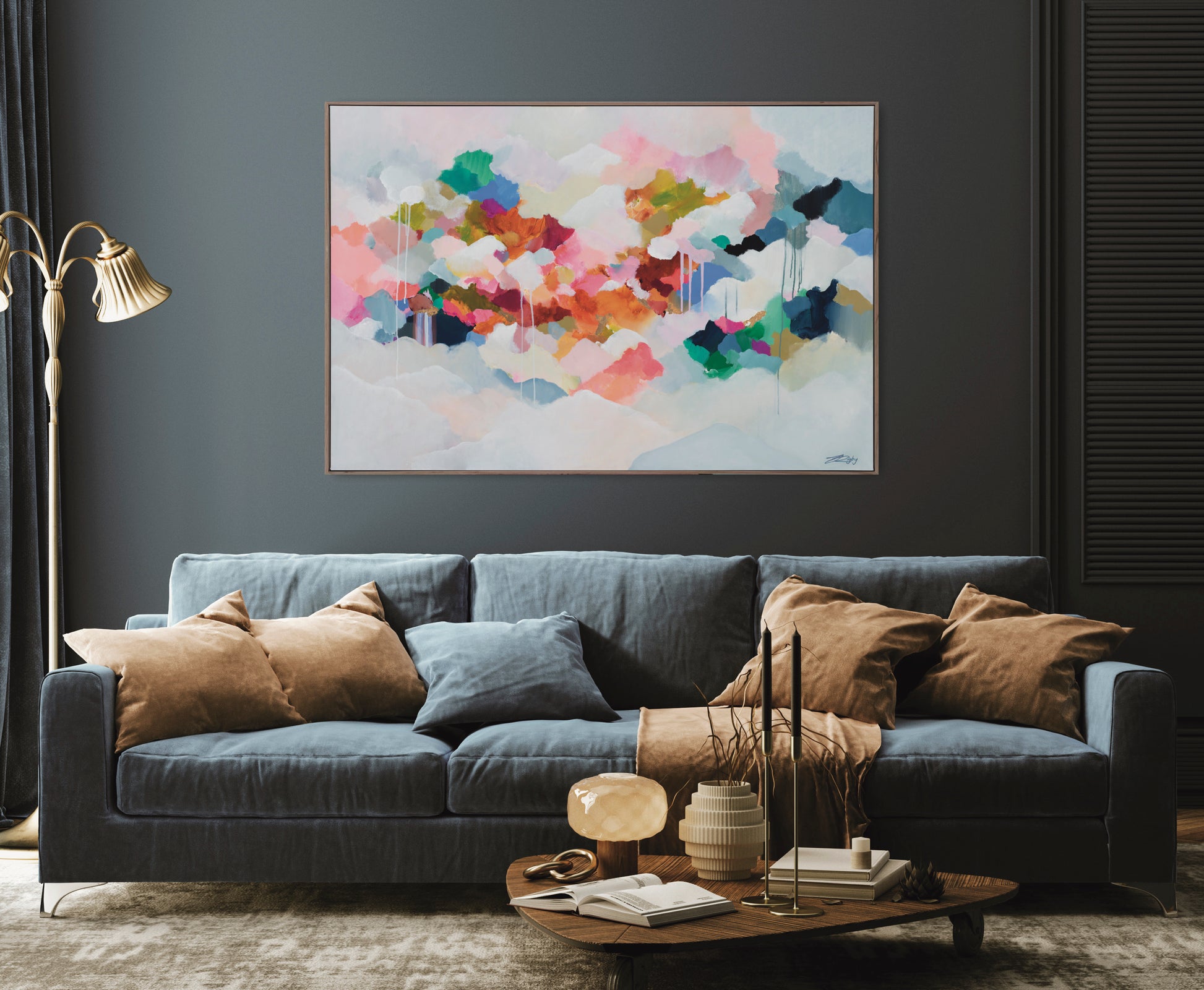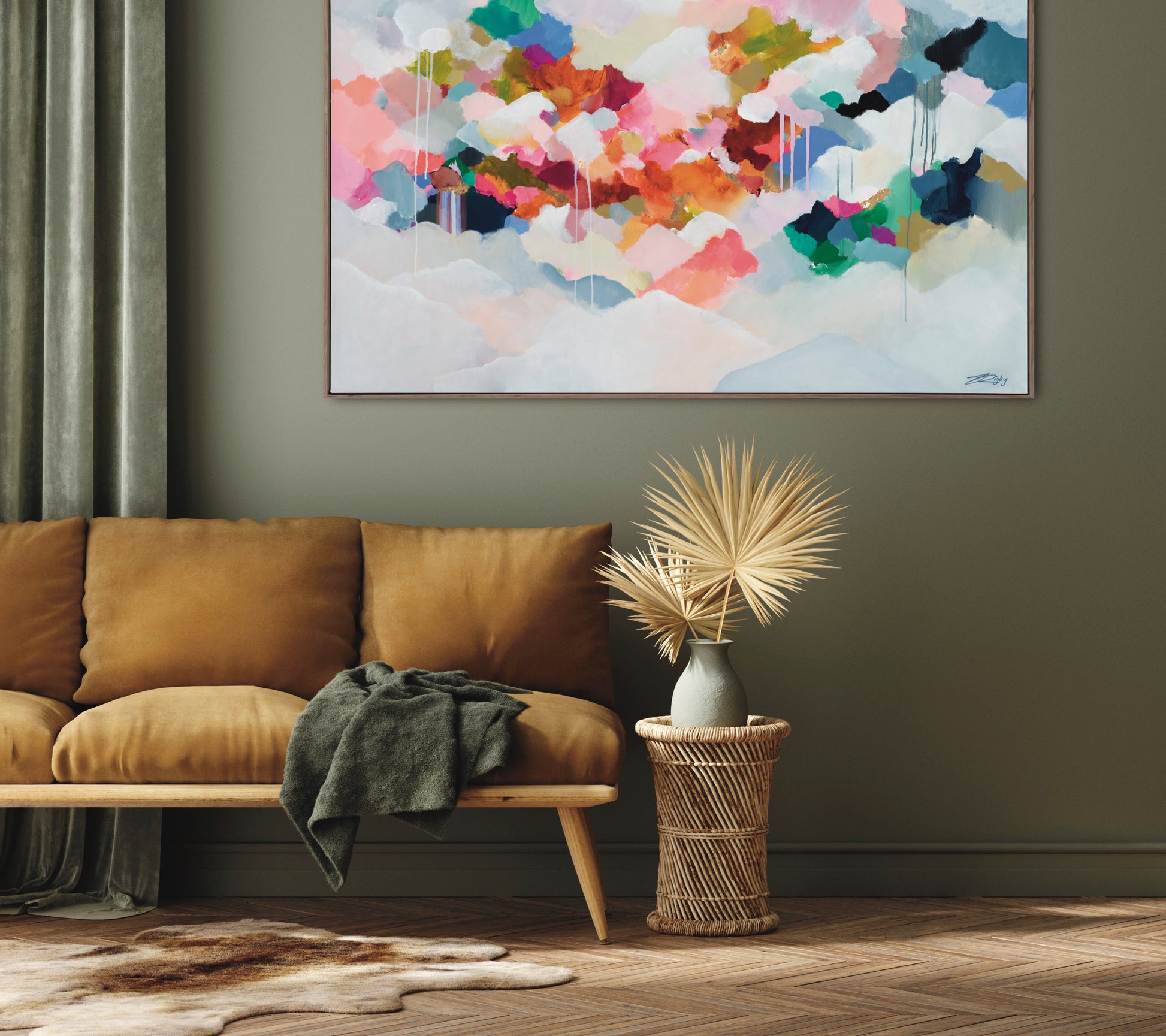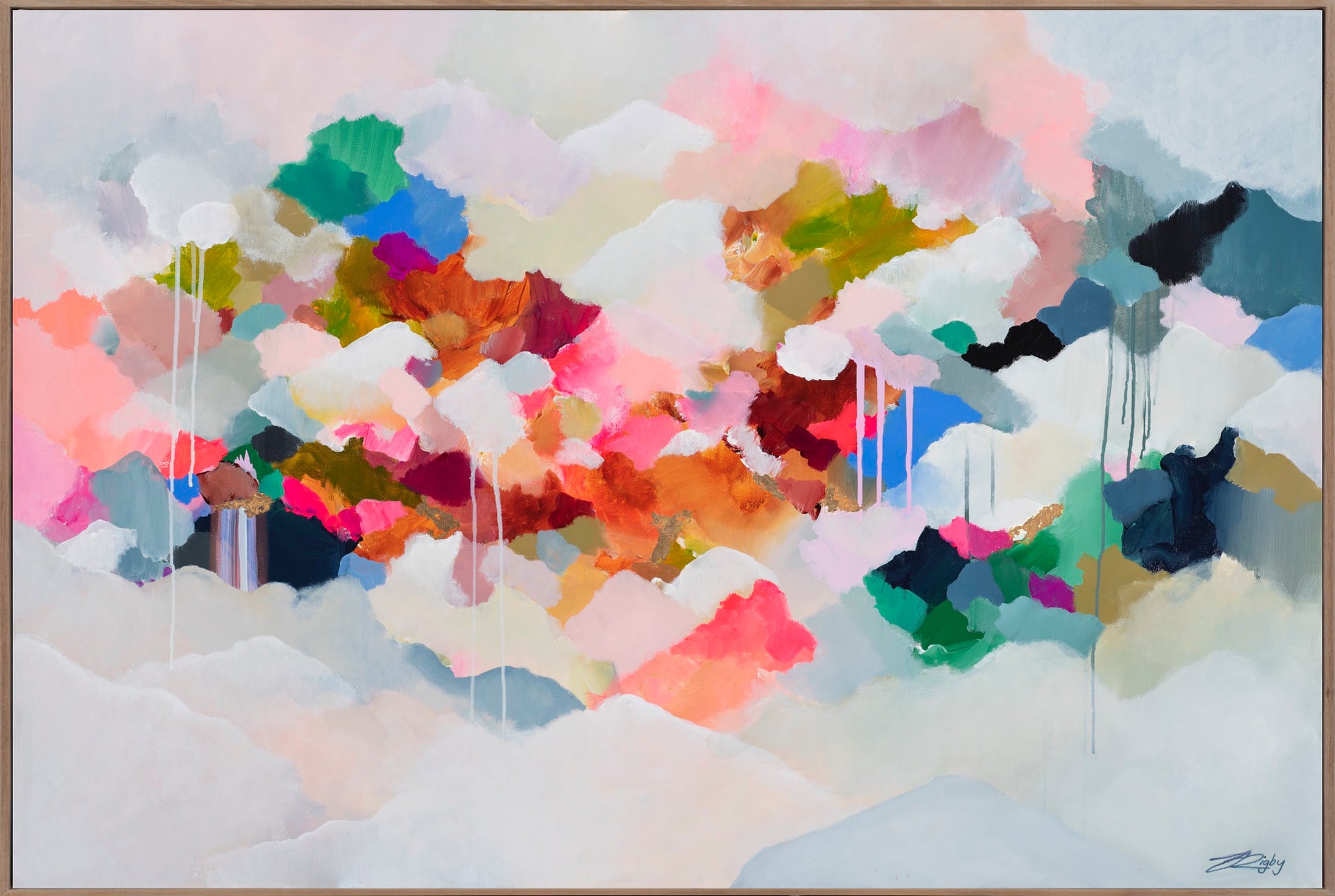 This reproduction print is derived from an original Jessie Rigby painting. The original featured a combination of various mediums including acrylics, oil pastels and metallics on canvas.